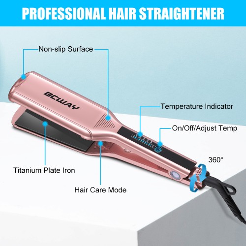Bcway Professional Hair Straightener, 2.16'' Extra-Large Floating Titanium Flat Iron for Hair, 30s Instant Heating Straightening Iron with 5 Adjustable Temp, Anti-Static Hair Iron for All Hair Types